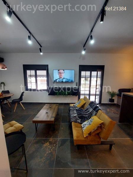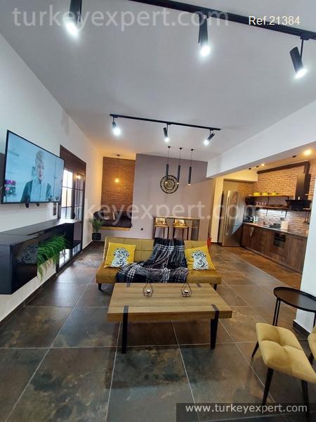 ملک بازسازی شده و فضای داخلی تازهای را ارائه میدهد. کاملاً مبله است و برای سکونت فوری، مجموعهای کامل را فراهم میکند.