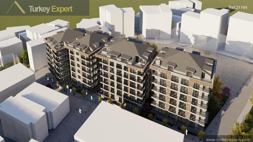 Positioned in the prestigious Besiktas district, this new residential project offers both urban convenience and coastal proximity, situated just 100 meters from the city center and approximately 4 km from the beach, with Istanbul Airport accessible within a 50 km radius.