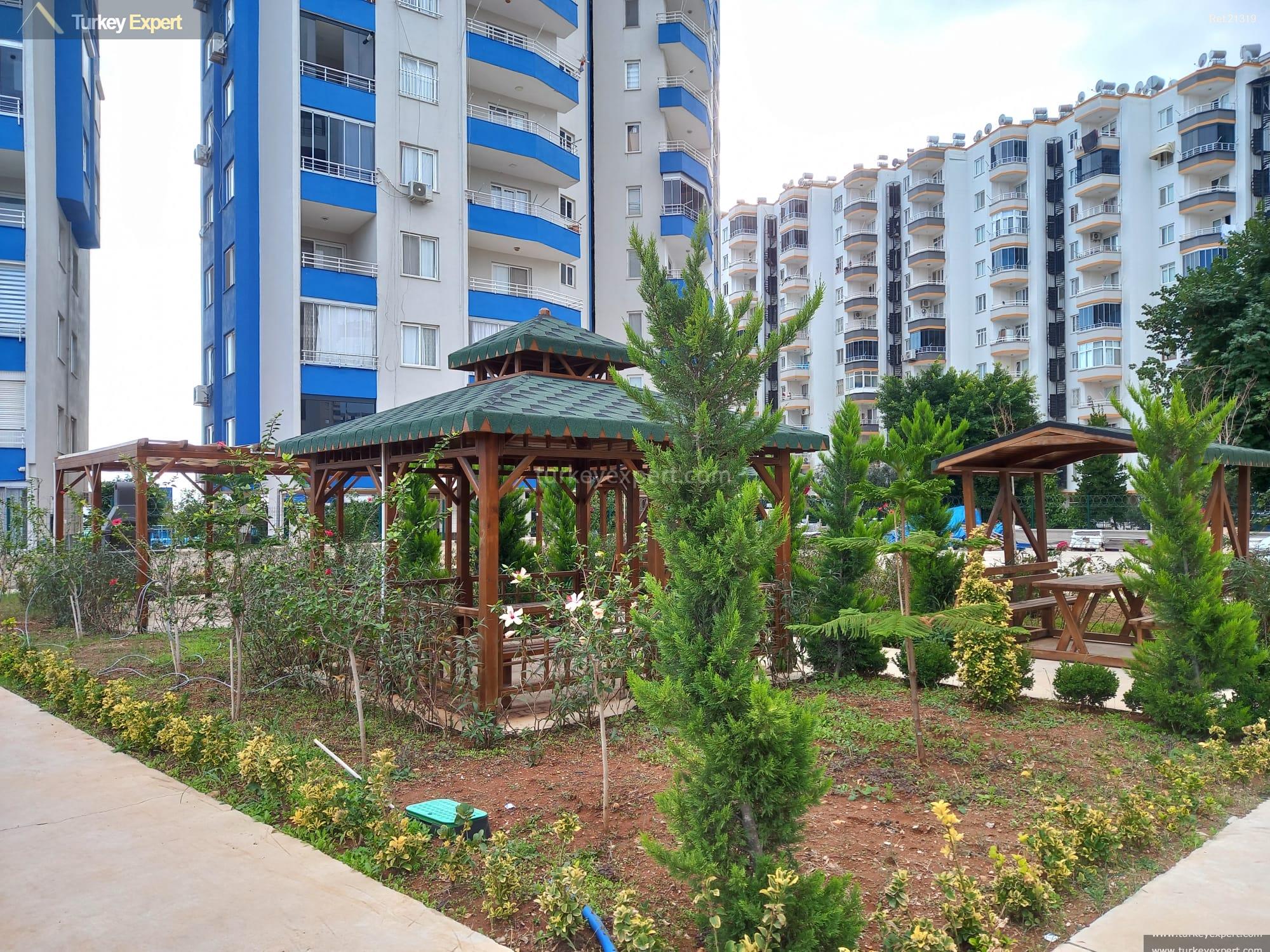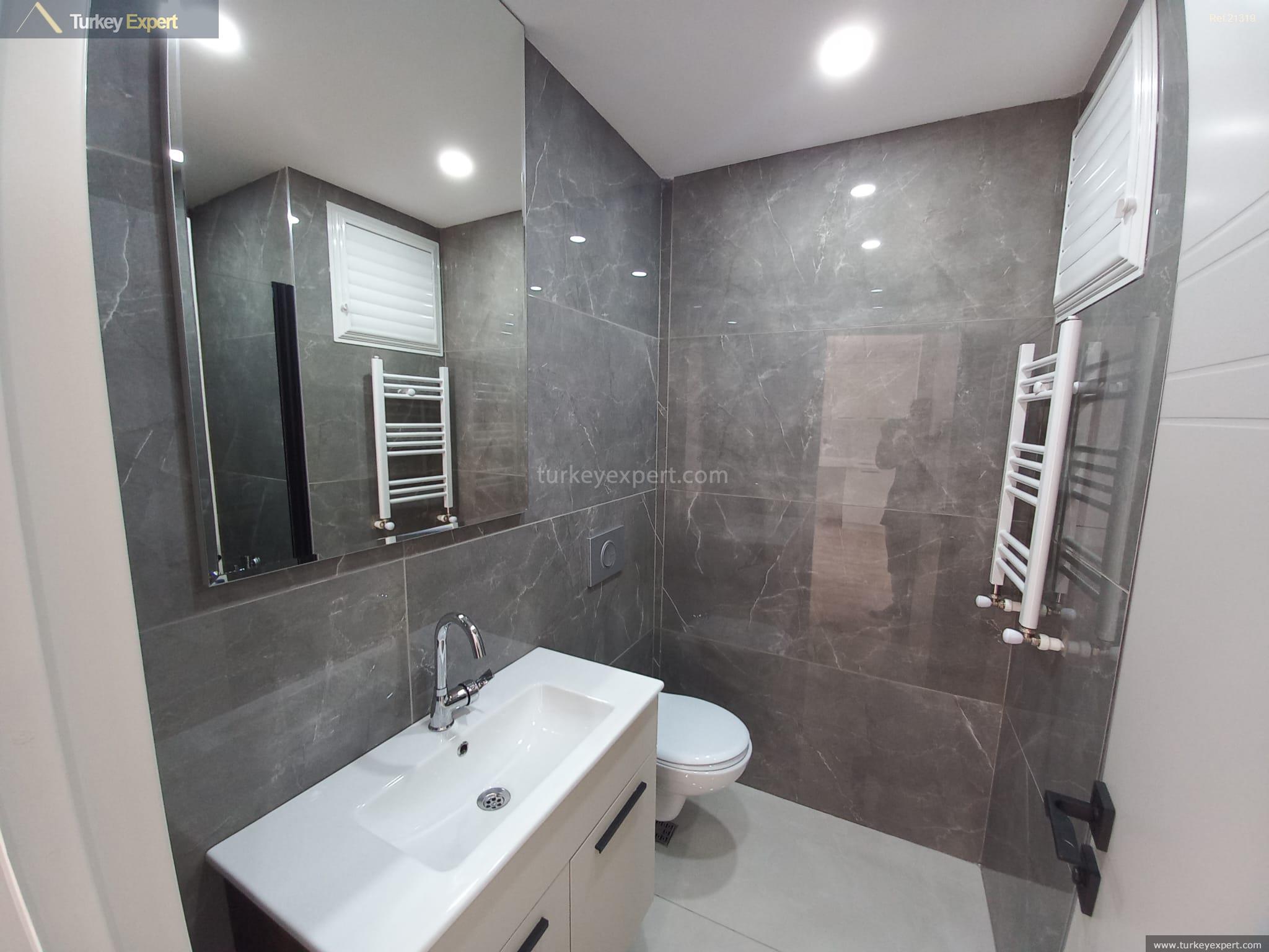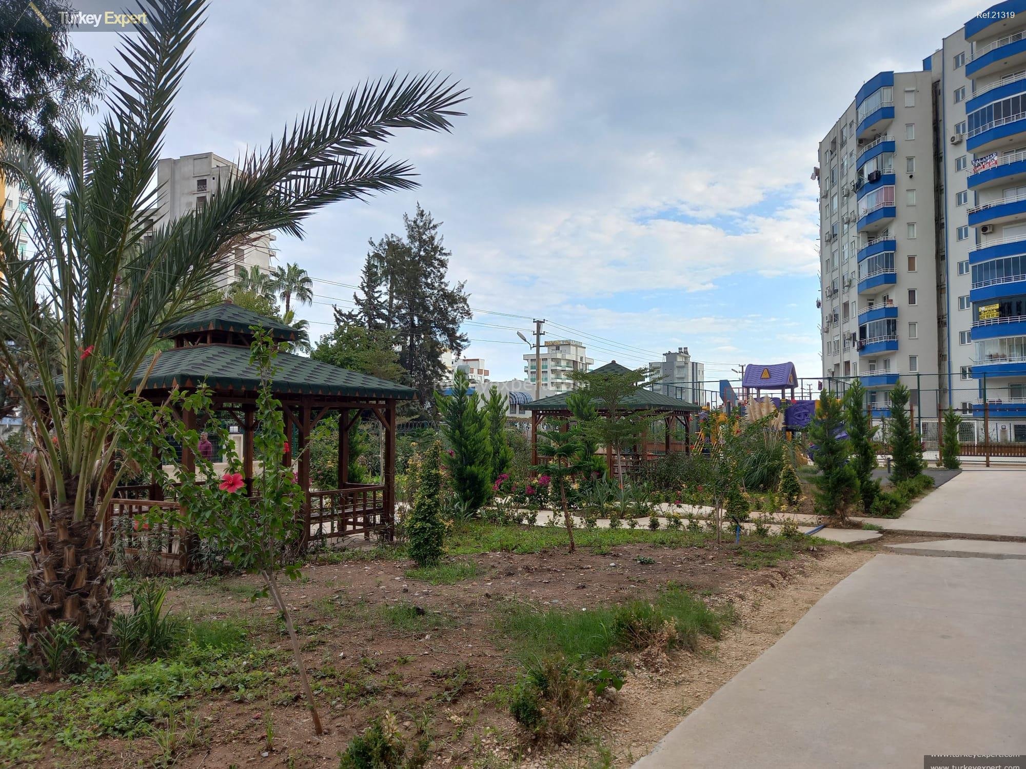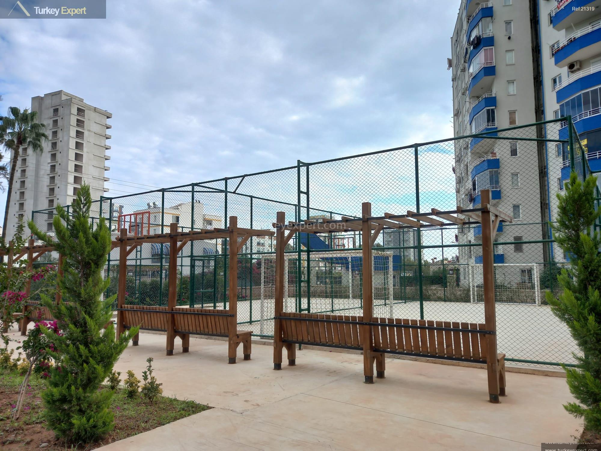 Each building in the complex is equipped with an elevator, with common areas featuring marble and granite finishes for an elegant touch. Access is facilitated by automatic gates, and additional practicality is ensured with natural gas availability. Located only 300 meters from the sea, this community is designed for those seeking a blend of energetic city life and calm coastal living.