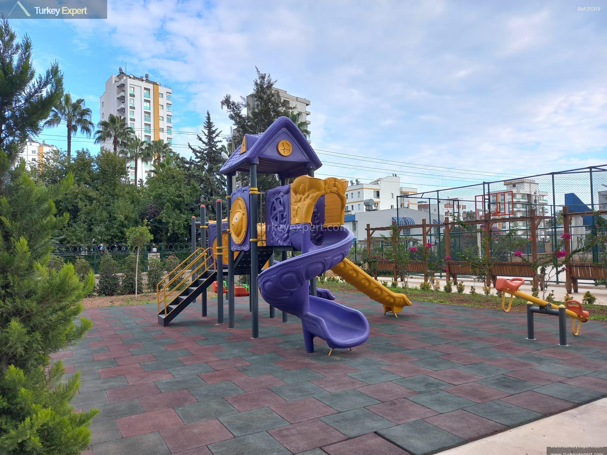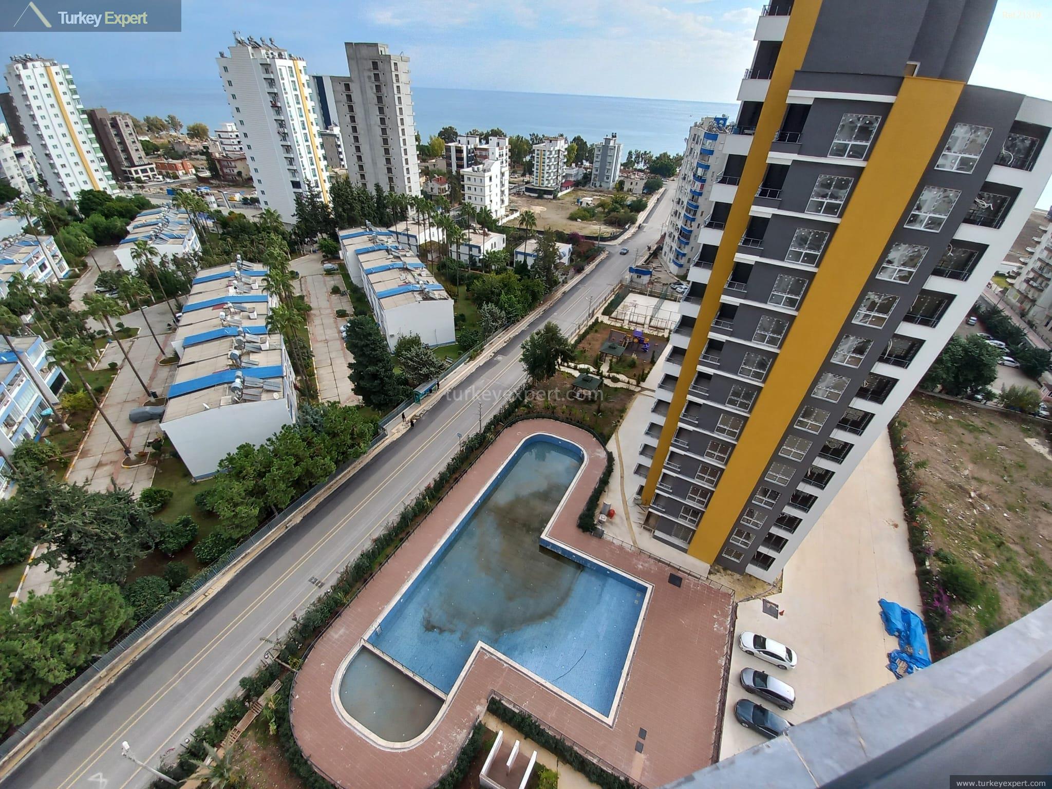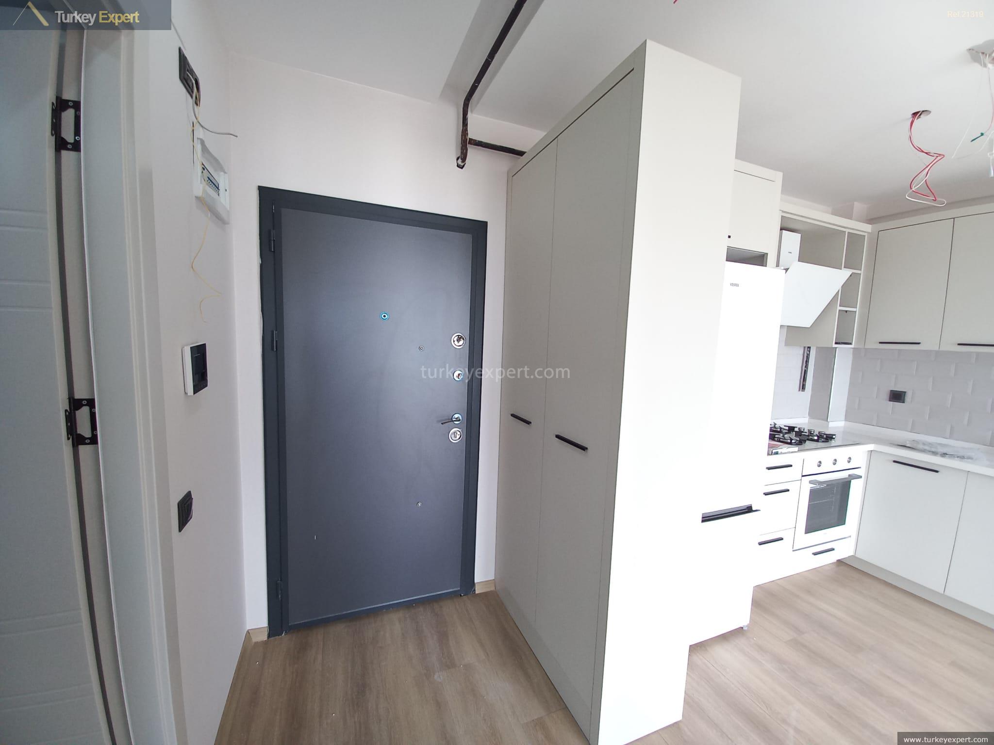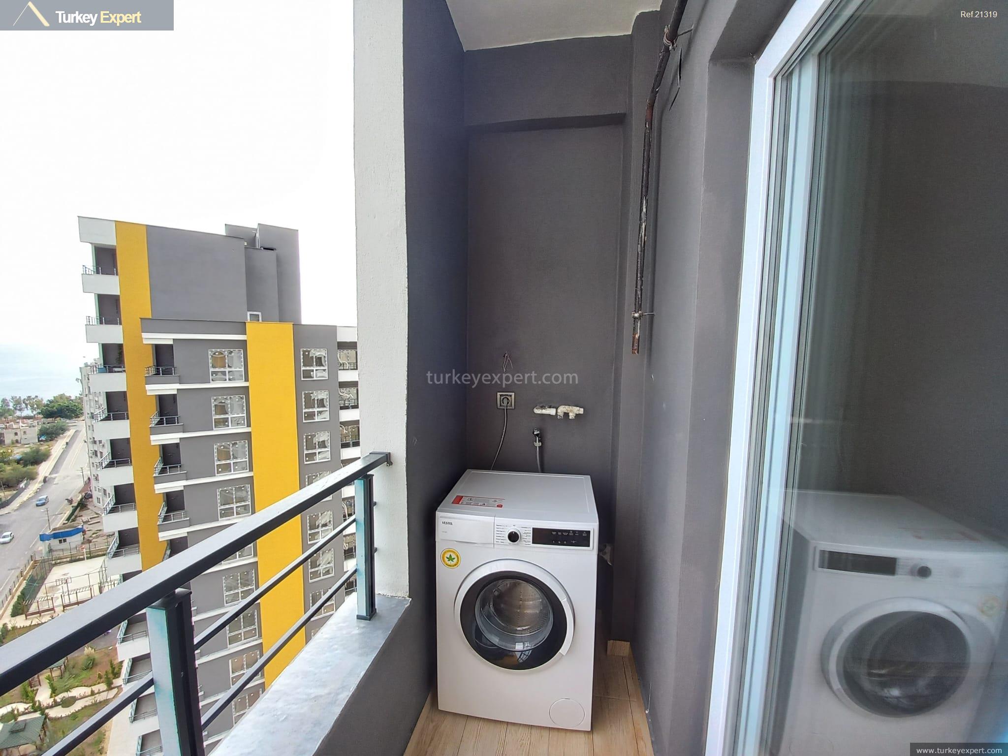 Each building in the complex is equipped with an elevator, with common areas featuring marble and granite finishes for an elegant touch. Access is facilitated by automatic gates, and additional practicality is ensured with natural gas availability. Located only 300 meters from the sea, this community is designed for those seeking a blend of energetic city life and calm coastal living.