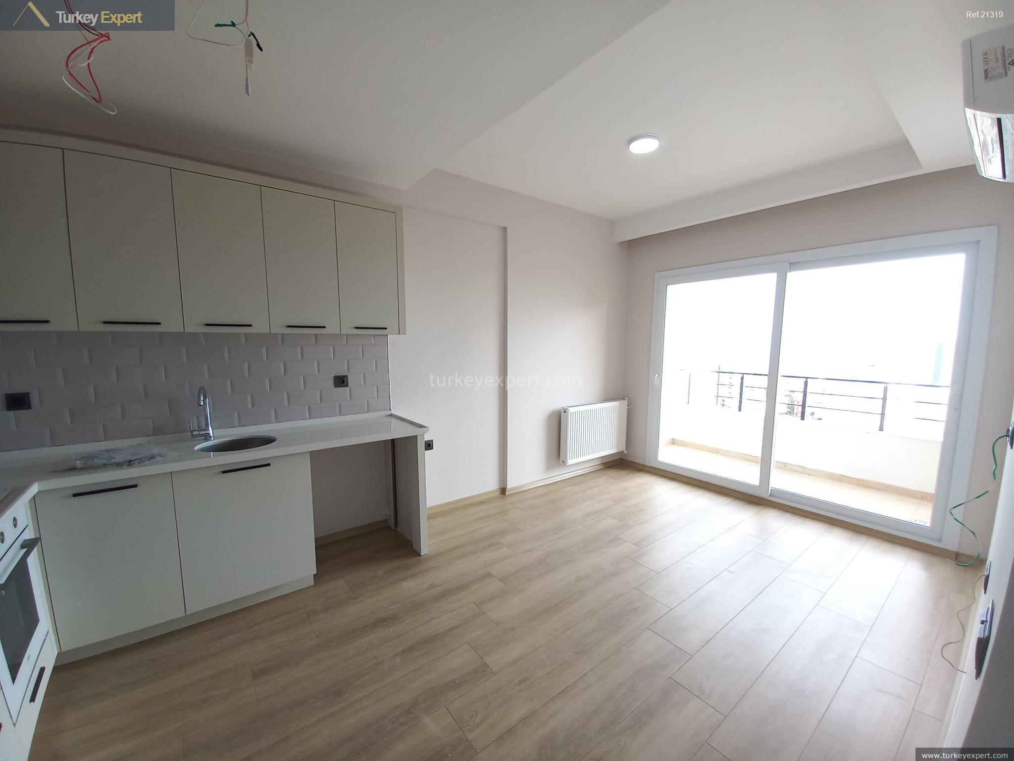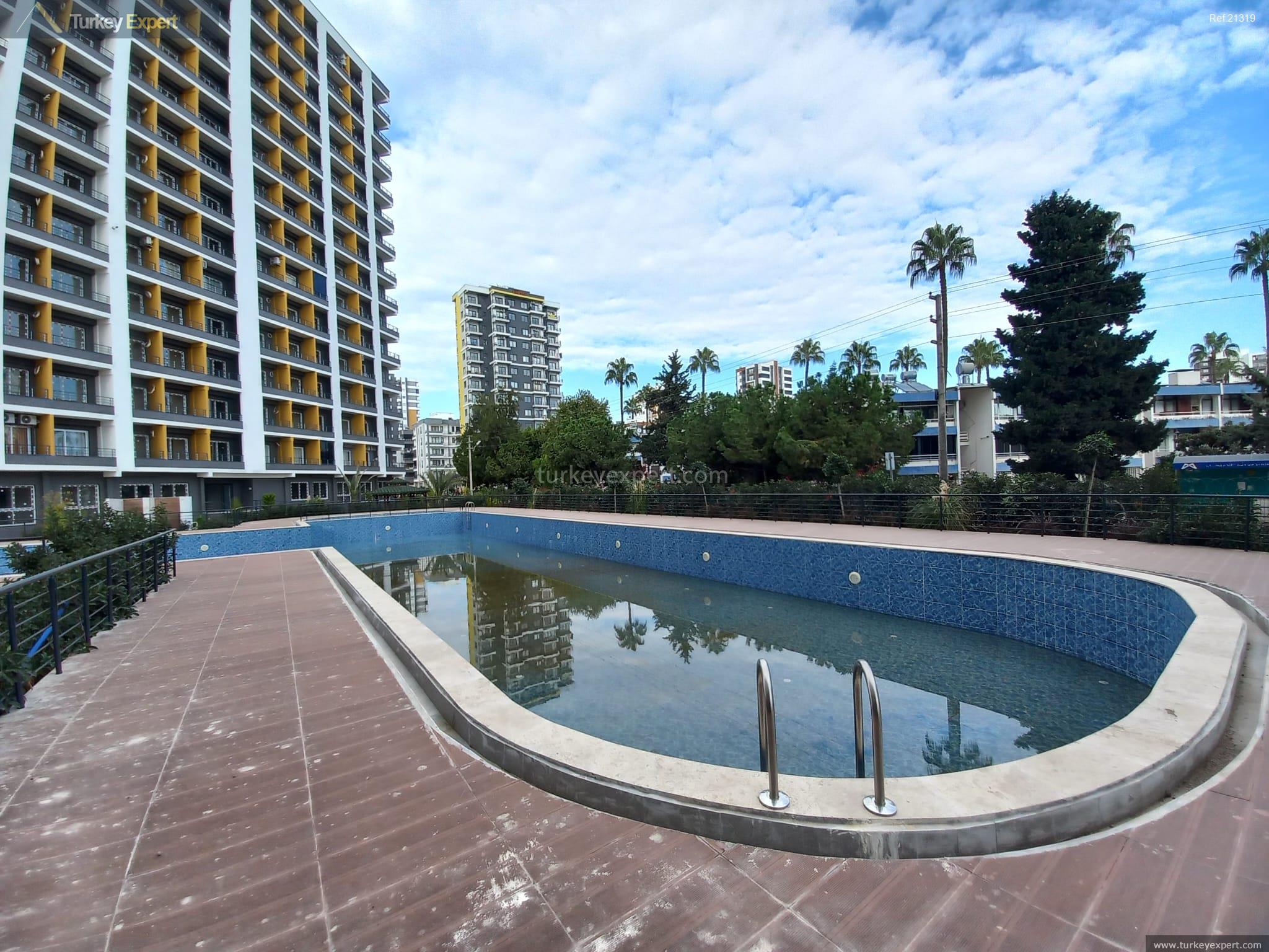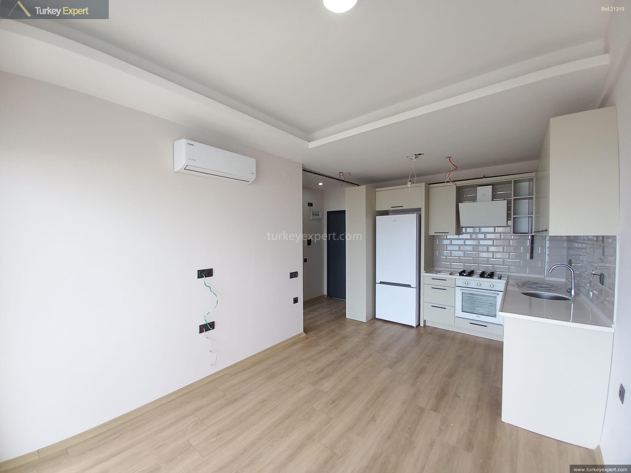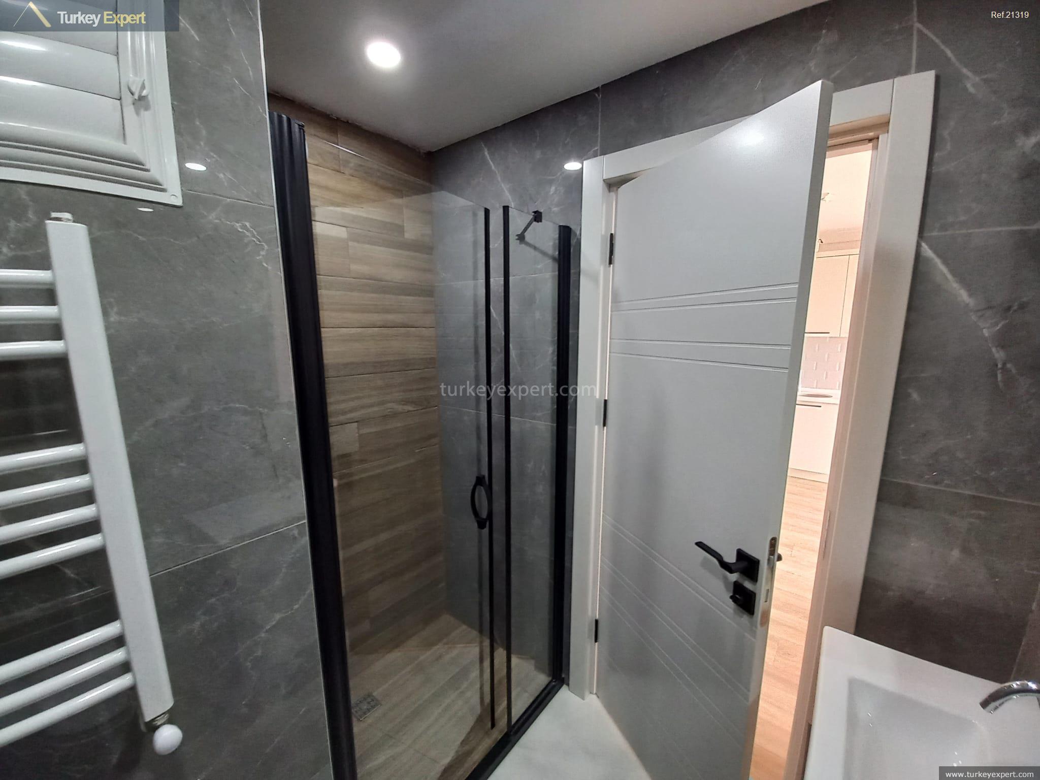 Each building in the complex is equipped with an elevator, with common areas featuring marble and granite finishes for an elegant touch. Access is facilitated by automatic gates, and additional practicality is ensured with natural gas availability. Located only 300 meters from the sea, this community is designed for those seeking a blend of energetic city life and calm coastal living.