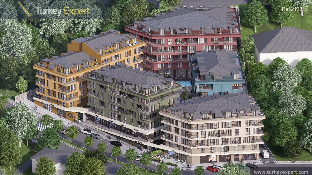 This exceptional residential community in Istanbul’s Beykoz district uniquely blends natural tranquility with urban convenience, nestled just steps from the Bosphorus and adjacent to serene forest greenery. Developed across a 35,000 sqm area with five modern blocks, the project offers 165 thoughtfully designed apartments ranging from cozy 1+1 layouts to spacious 4+1 family residences, alongside 12 ground-floor commercial shops ideal for daily needs and business opportunities.