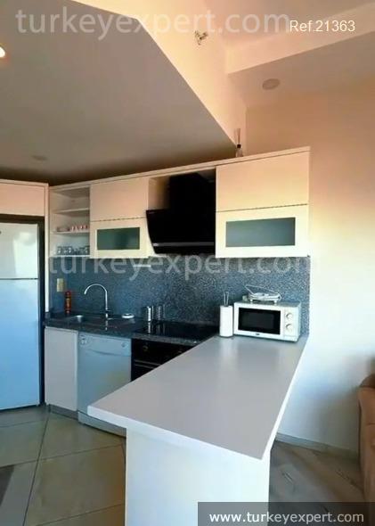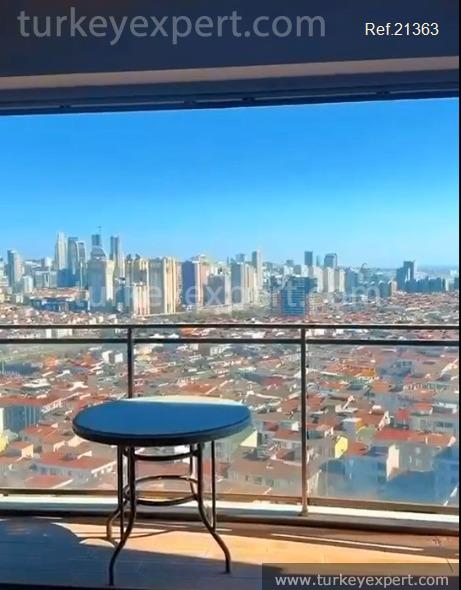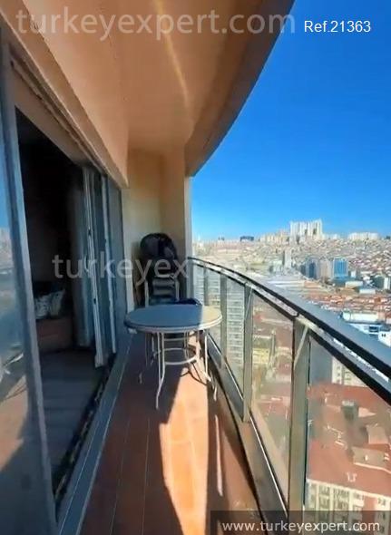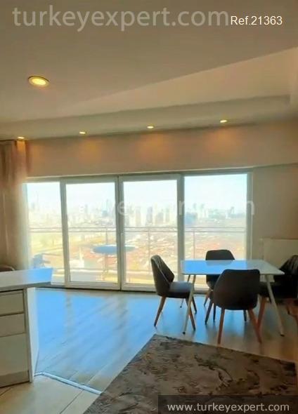 This fully furnished 1+1 apartment in Istanbul provides comfort on the 19th floor of a well-equipped complex.