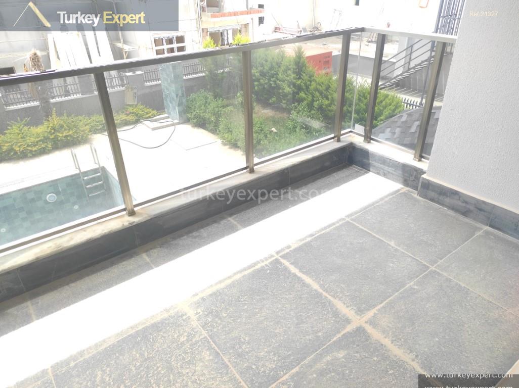 Each building within the complex is equipped with an elevator to ensure easy accessibility. Staircases are crafted with marble and granite, adding a touch of elegance to the communal areas. The garden is consistently maintained through an automatic watering system, keeping the green areas lush and inviting.
