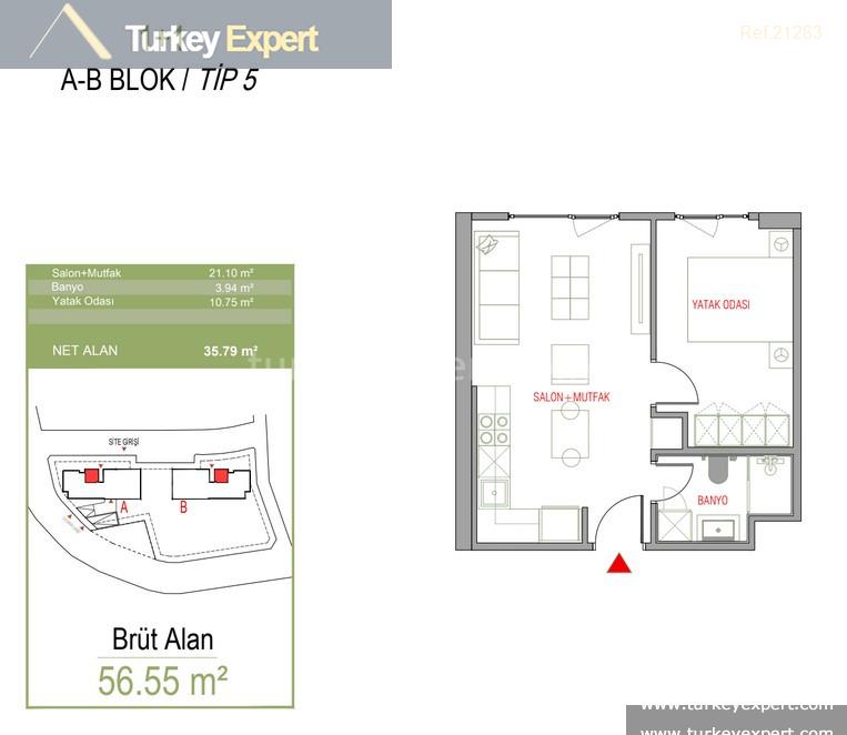Residents can choose from 1+1, 2+1, and 3+1 apartment options, supported by fitness facilities, secure indoor parking, balconies, terraces, and controlled site access.