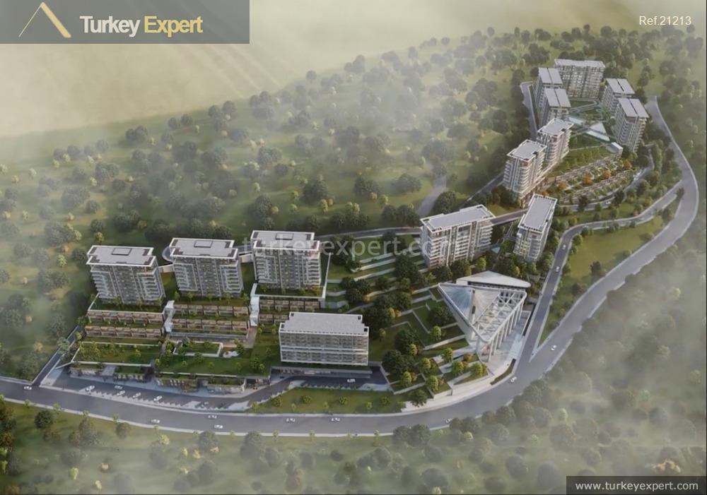 Set against a lush landscape with panoramic views of surrounding forests and Ali Bey Lake, the development dedicates 60% of its area to green spaces, creating an immersive natural environment within the city. A diverse range of layouts—from functional 2+1 and 3+1 apartments to spacious 6+1 lofts and elegant garden villas—ensures options for every need, with an emphasis on privacy, comfort, and harmony with nature.