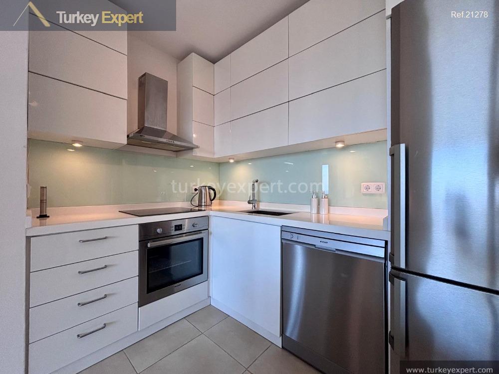 Daire, büyük bir balkona açılan sürgülü veranda kapılı geniş bir yaşam alanı, ankastre mutfak, iki yatak odası ve bir banyoya sahiptir. Modern mobilyalar fiyata dahildir.