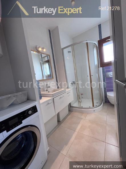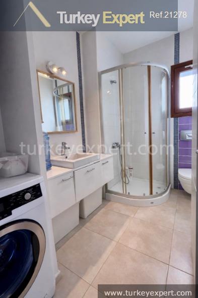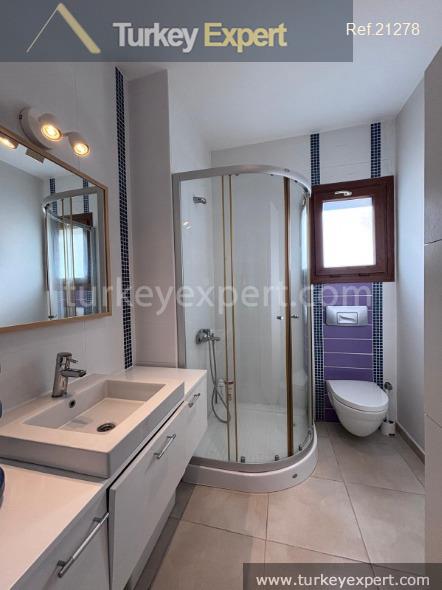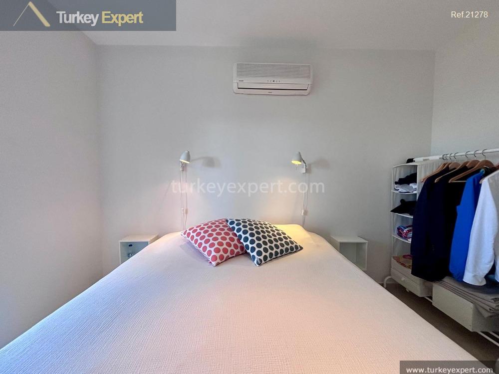 Bu birinci katta (en üst kat) yer alan daire, iki ortak yüzme havuzu, bir tiyatro ve yıl boyunca bakım hizmeti sunan iyi bakımlı bir sitede, Gümüşlük Bodrum'da yer almaktadır.