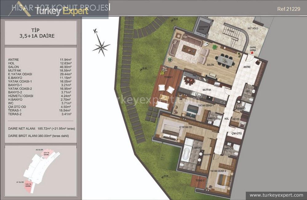 Rezidansın ötesinde, burada yaşam, kapalı ve açık yüzme havuzları, tam donanımlı bir fitness merkezi, bir şık yemek restoranı ve sauna, geleneksel Türk hamamı ve masaj odası içeren özel bir spa alanı gibi üst düzey olanaklarla zenginleştirilmektedir. Vale hizmeti ve geniş özel park yeri ile desteklenen her ayrıntı eksiksiz ve lüks bir yaşam tarzı sunmak için özenle düzenlenmiştir.