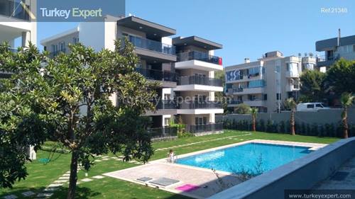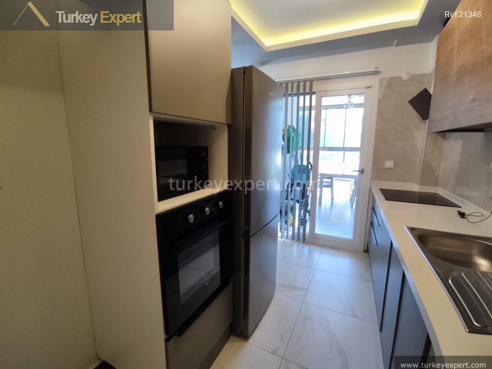 Erleben Sie die perfekte Mischung aus städtischem Komfort und Resort-Lifestyle. Diese wunderschön ausgestattete Wohnung mit zwei Schlafzimmern liegt versteckt in einer ruhigen, bewachten Wohnanlage direkt im lebendigen Zentrum von Kusadasi.